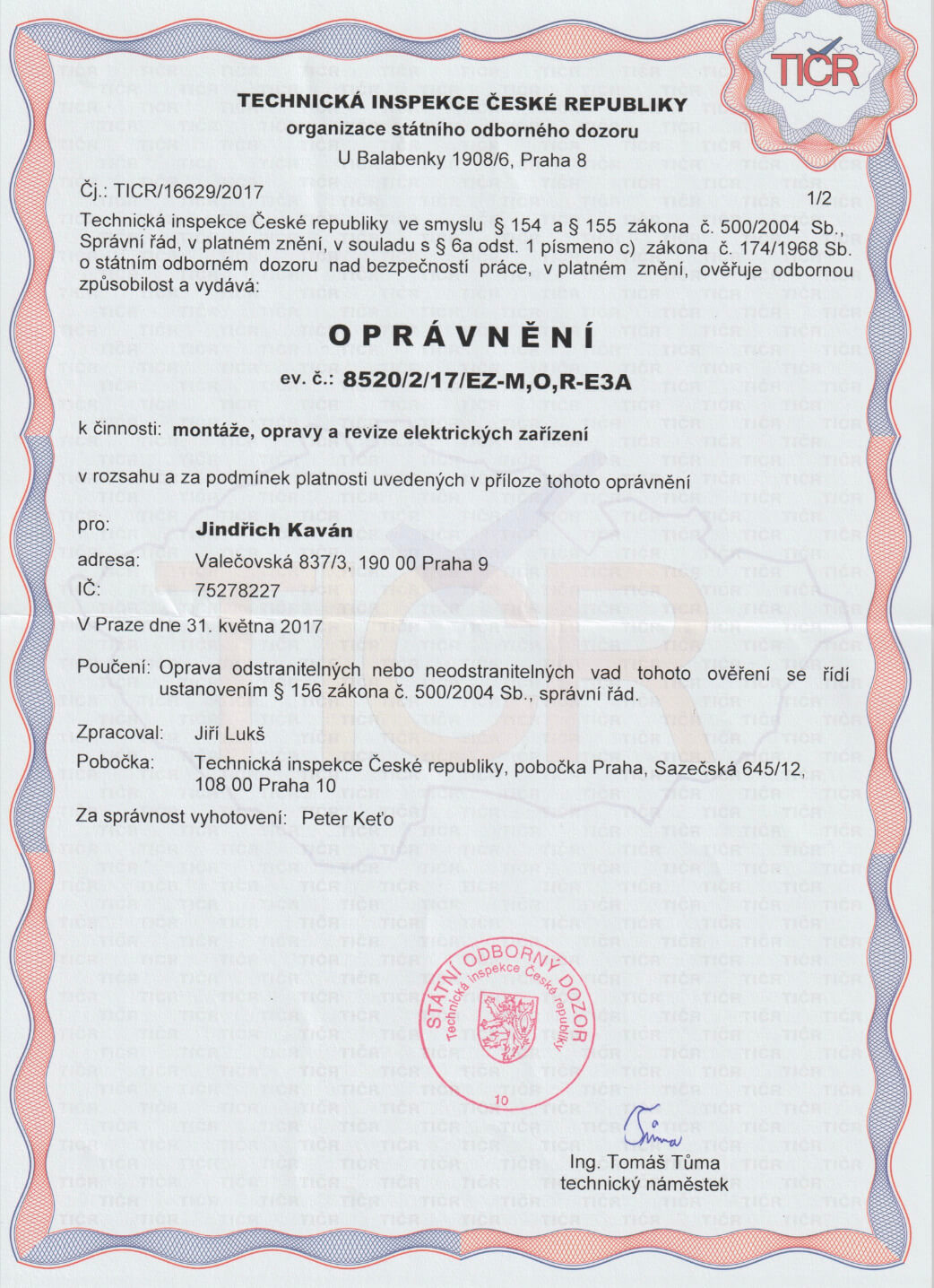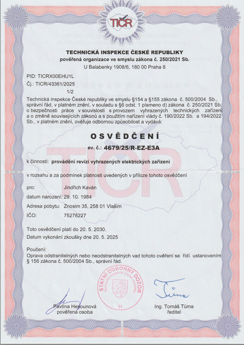 Osvědčení TIČR